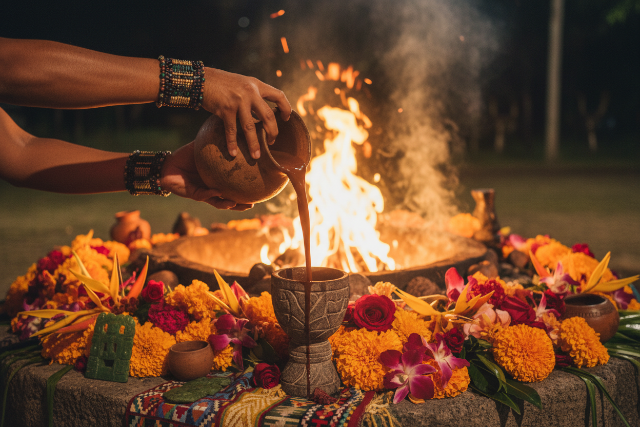 The Complete Guide to Ceremonial Cacao โ your gateway to the ancient art of cacao rituals, preparation methods and the sacred Maya heritage behind every cup.